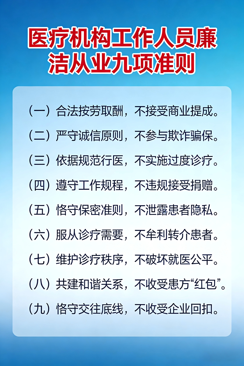 医疗机构工作人员廉洁从业九项准则